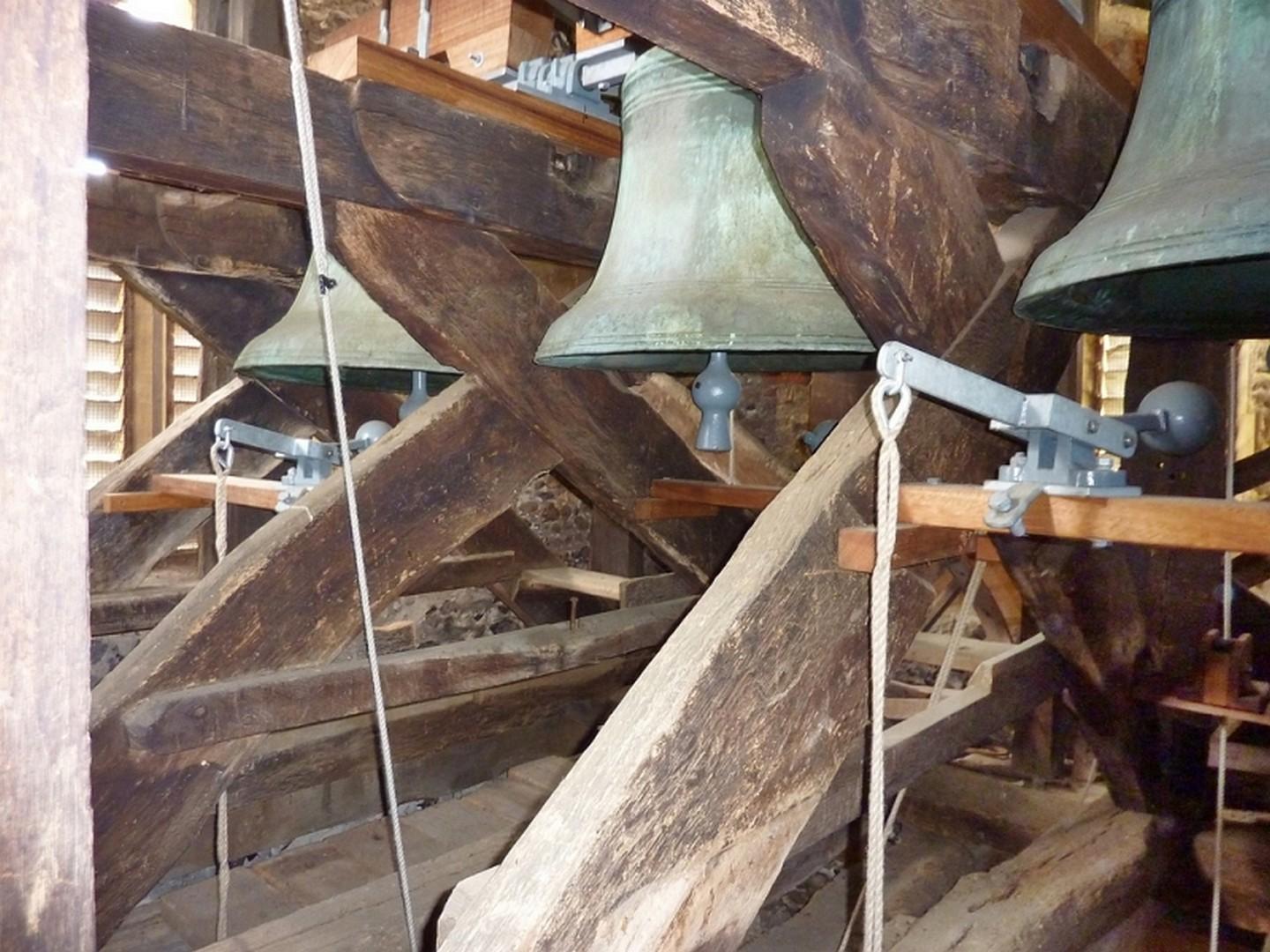 The bells, St James church. It's possible that there were more than three originally. The treble (on the left) was made by John Briant of Hertford in 1790. Photo 2010.