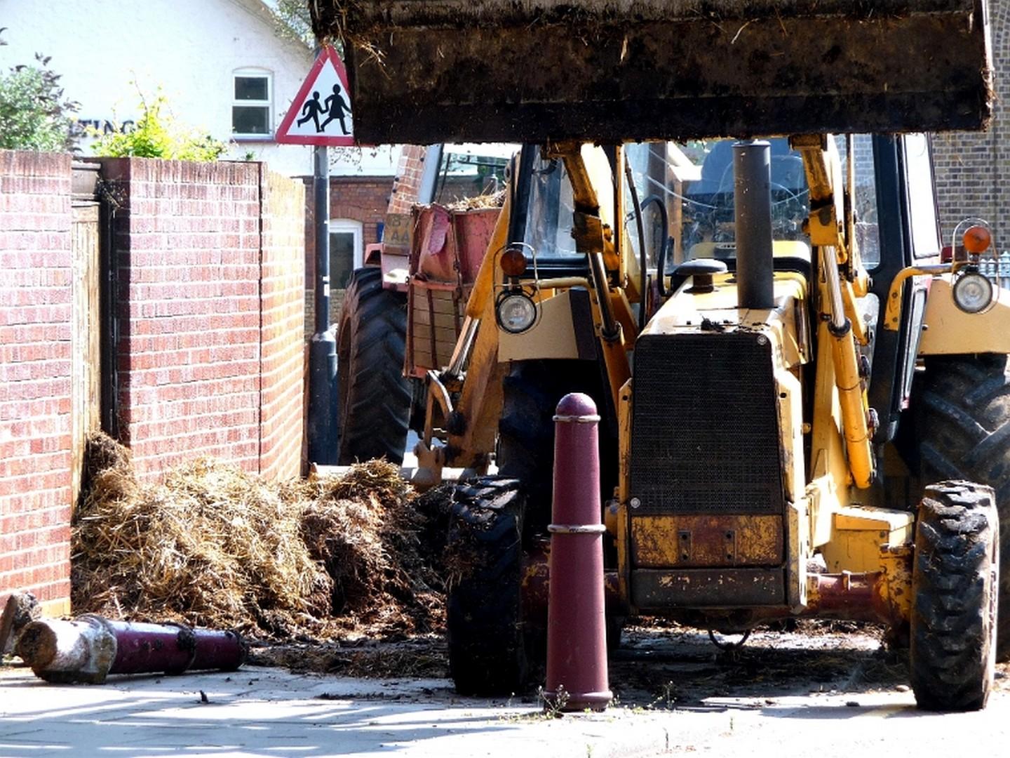 Clearing up the mess. Apart from the bollard no damage was done. Roydon Road April 19th 2011