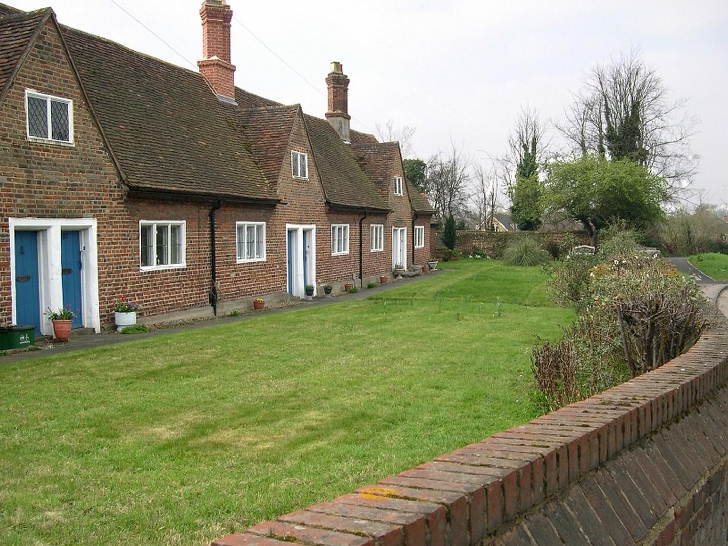 The Alms Houses, Roydon Road. Founded in 1635 by Sir Edward Baesh, who was a resident of the village; he left six almshouses for widows and decayed tradesmen. Although there are six doors the number of dwellings has been reduced. Photo 2006.